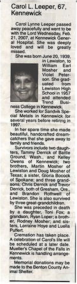 Reported in the Lewiston Morning Tribune on 2/25/07