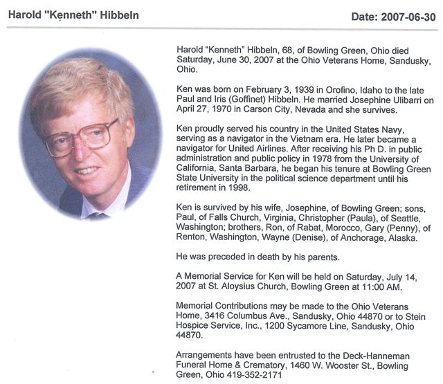 BOWLING GREEN, OHIO. - H. Kenneth Hibbeln, 68, an